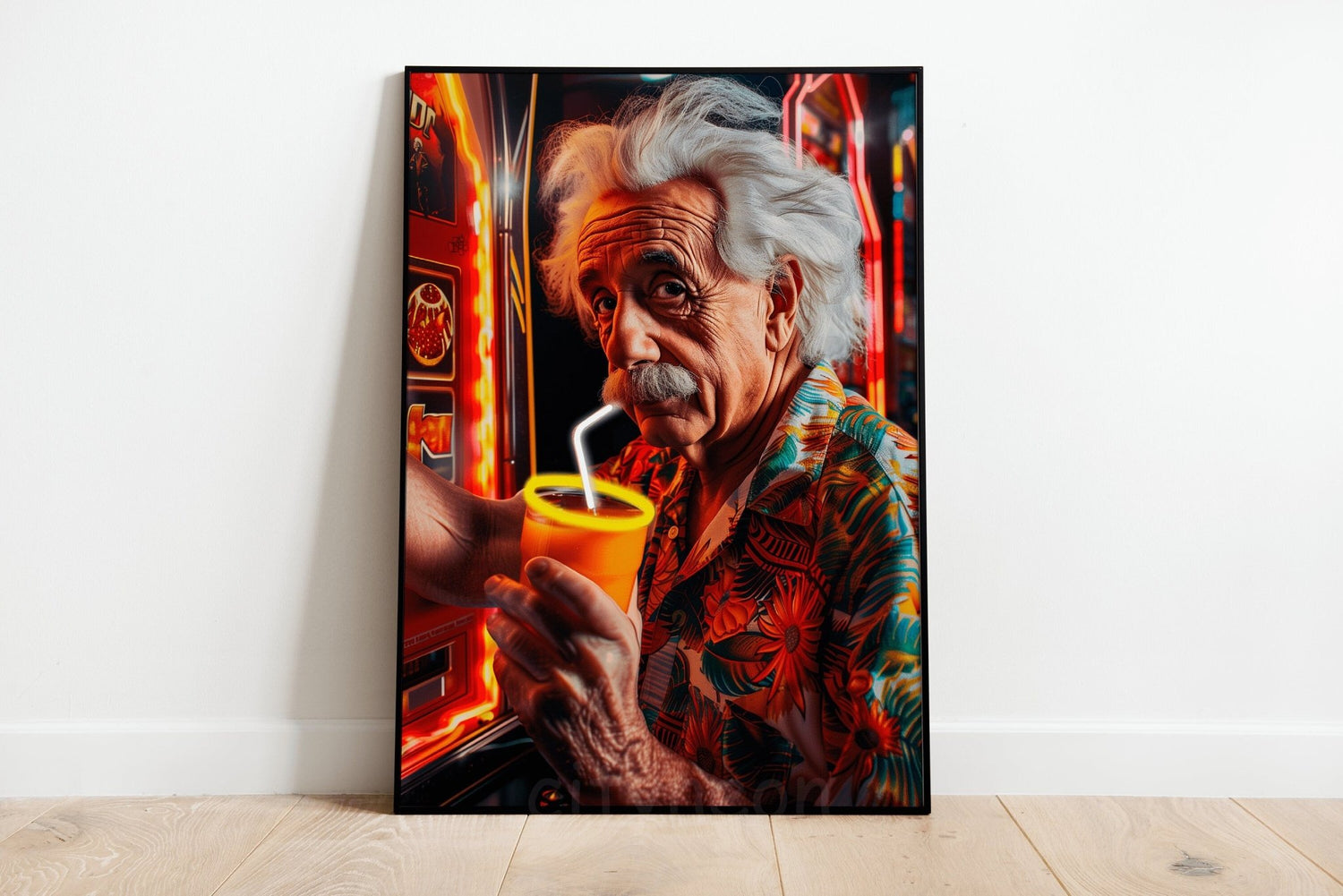 Elevate your space with this Handmade Einstein Pop Art Neon Sign framed as Canvas Wall Art. A perfect addition to your office wall, shop decor, or gallery wall. This minimalist wall art combines modern art painting with a touch of Einstein figurine, making it an ideal custom backdrop and a unique gift poster. Transform your surroundings with this framed wall art, perfect for creating a contemporary and stylish atmosphere.
