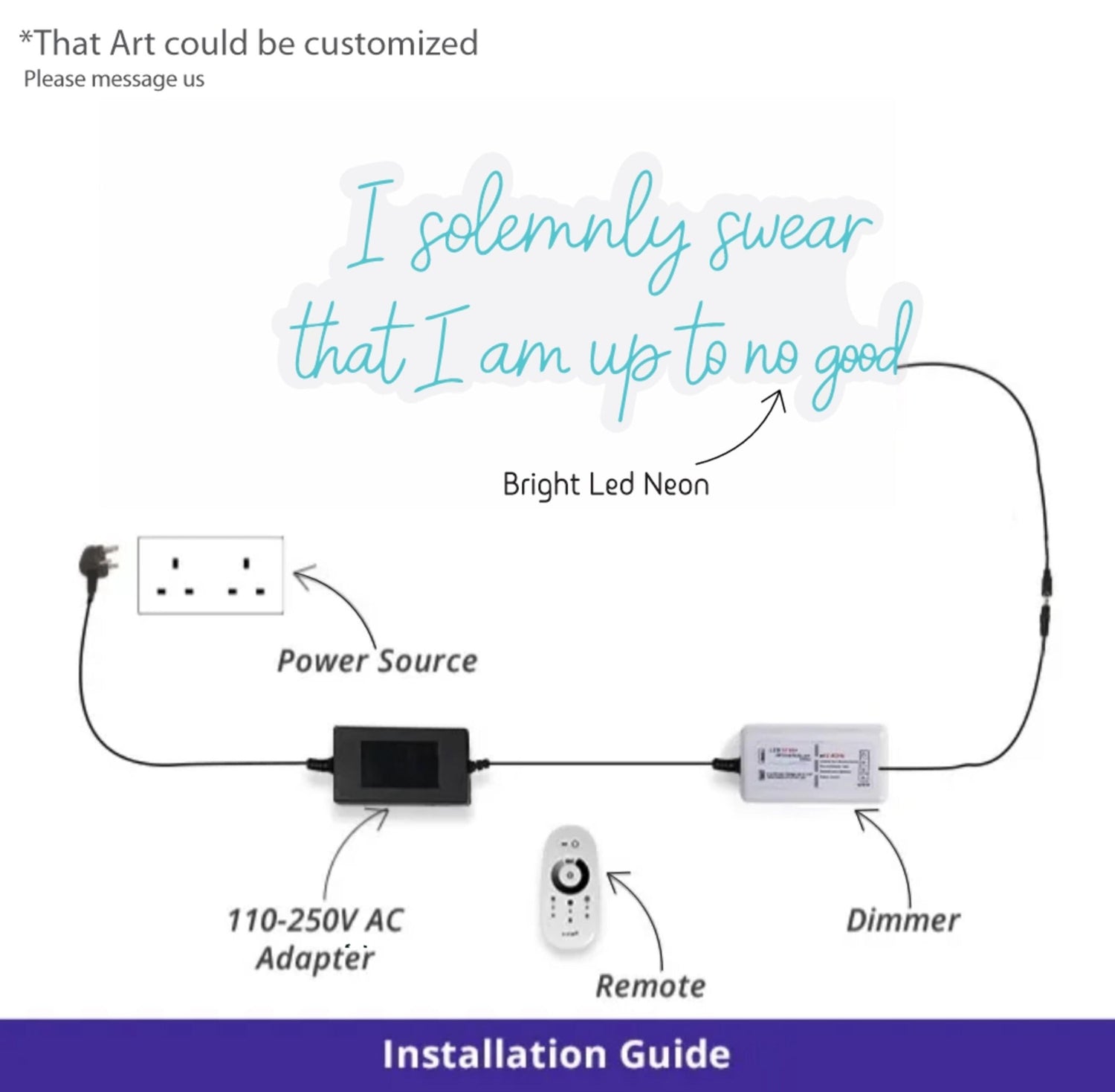 Yes, each neon sign comes with a wireless dimmer remote, allowing you to control the brightness and set the perfect mood in any room. Additionally, the sign includes a 2-meter power cord and power bank for easy installation.