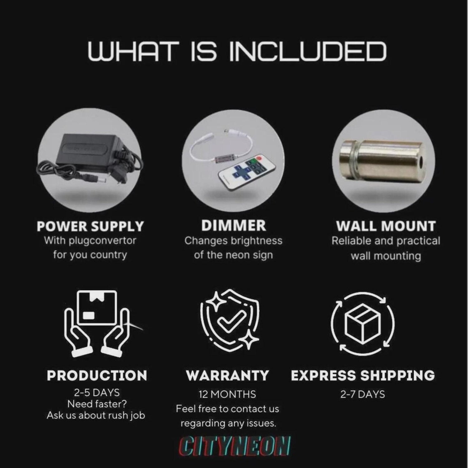 Our standard production time is 1-2 weeks. However, if you need your neon sign sooner, we offer a rush production option for an additional fee, reducing the processing time to as little as 5 days.