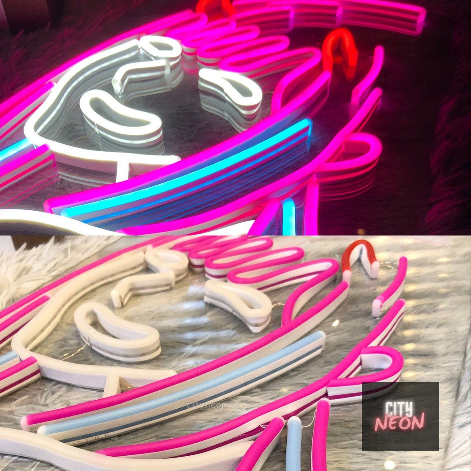 This flexible LED custom neon light can be mounted on a screw or on a chain. It has a hanging chain and a bottom hole. You can customize any text, logo, color and size according to your needs. Neon lights will play an amazing decorative role in your rooms, bars, shops, birthday parties, weddings and other places 🖼️