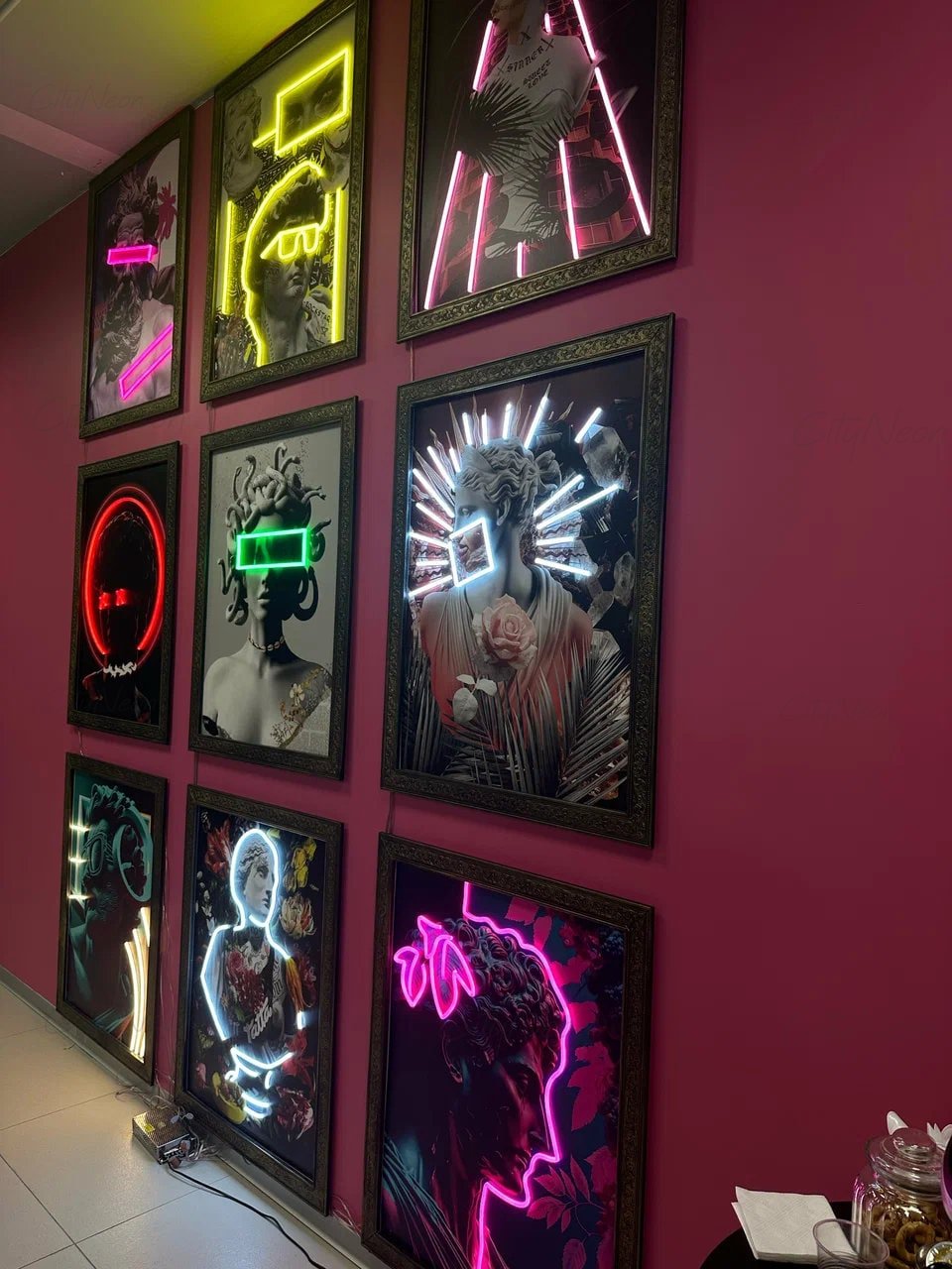 Add a touch of contemporary flair to your decor with our Contemporary Neon Painting Art. This stunning piece combines custom neon signs with modern art painting, creating a vibrant and eye-catching addition to any space. Perfect for restaurant decor, business settings, or vintage-inspired interiors, this neon canvas art is designed to impress.