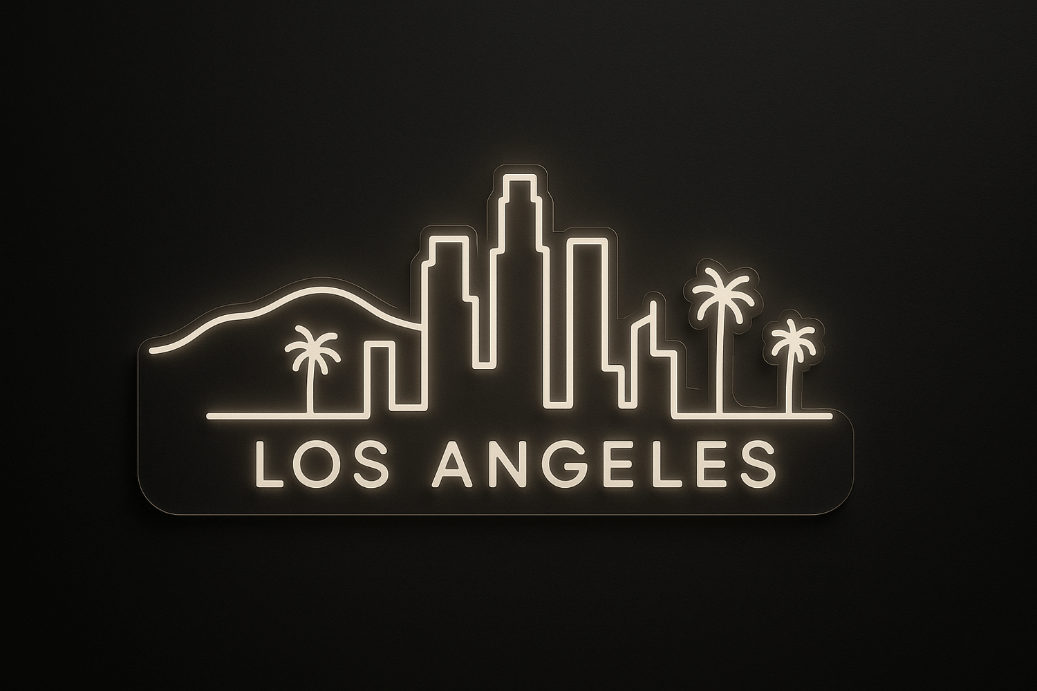 This Los Angeles skyline LED neon sign brings a clean, modern warm-white glow into any interior. Featuring a minimal continuous-line silhouette of downtown LA with a subtle palm-tree contour, the piece blends perfectly with neutral, soft, or warm-toned spaces.