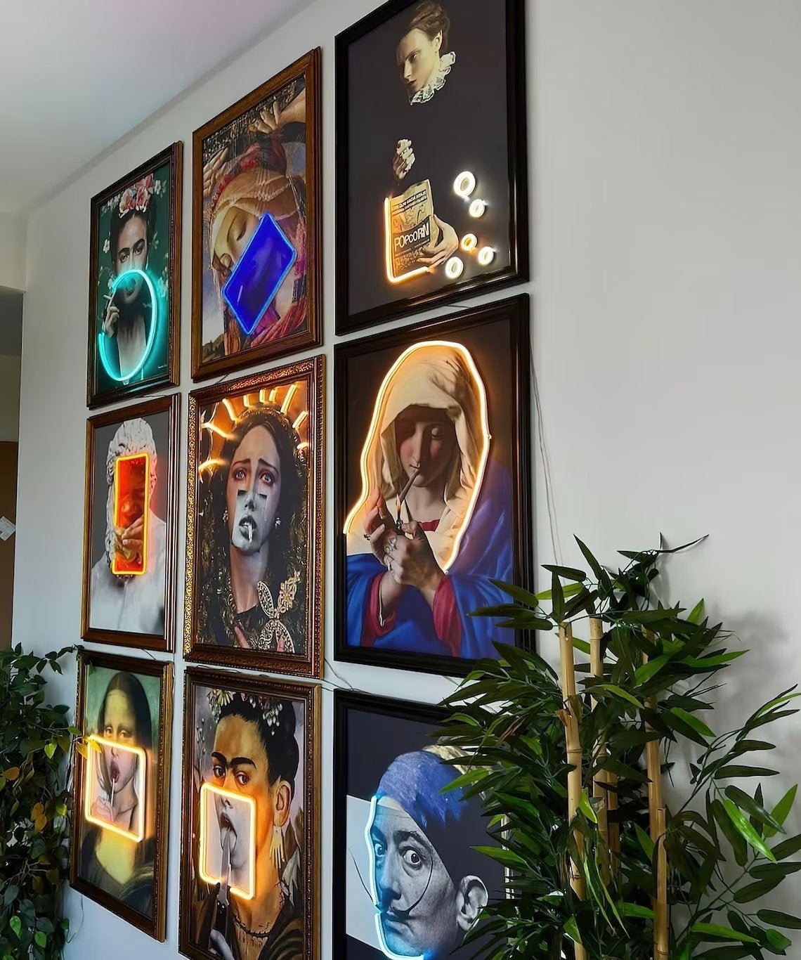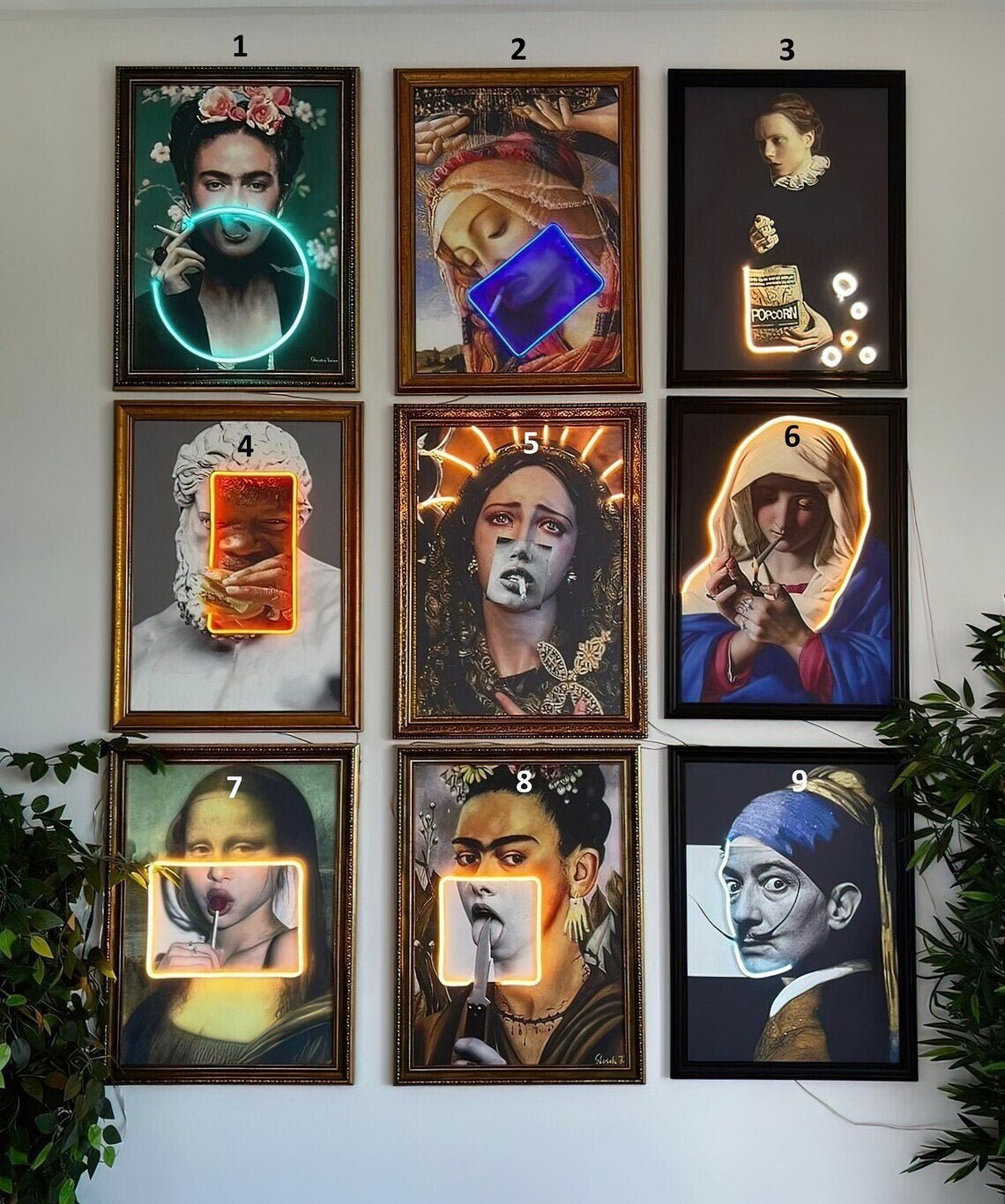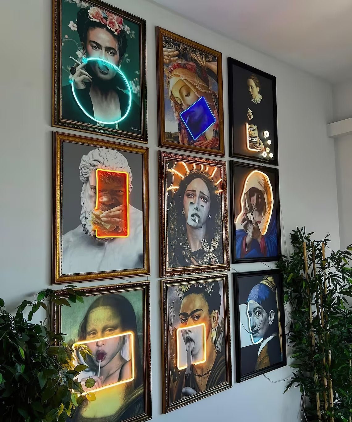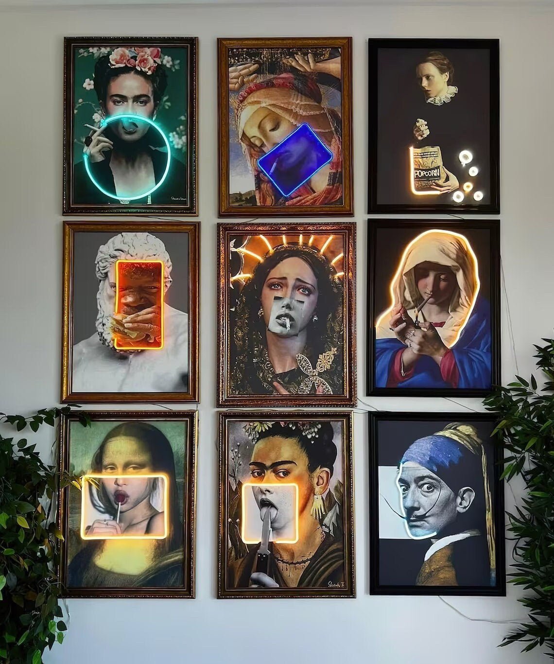 Transform your space with our Neon Painting Art collection, featuring custom LED neon sign wall art that seamlessly blends modern art painting with contemporary and vintage decor. Each piece in this collection is highlighted by LED neon, framed in elegant wooden frames, creating a stunning focal point for any home gallery, club, or bar decor. Choose from a variety of designs or purchase the entire set to elevate your interior with vibrant, eye-catching neon art.